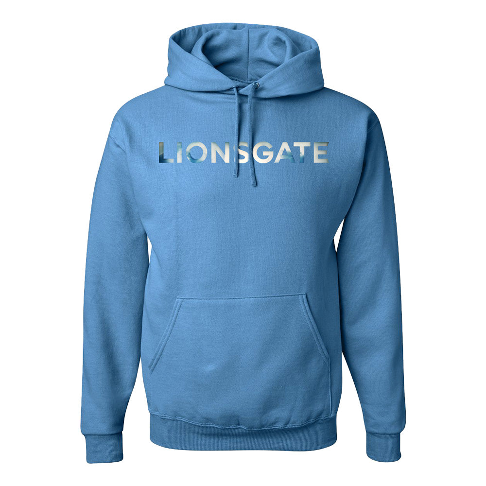 Stay cozy in this laid back hoodie featuring the Lionsgate logo with a cloud print.