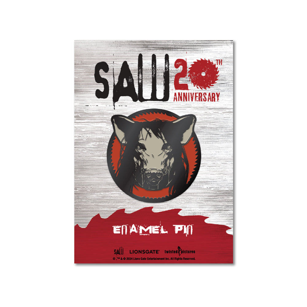 Celebrate 20 years of fear with this limited-edition SAW 20th Anniversary Pig Mask enamel pin. Perfect for any fan looking to commemorate two decades of chilling horror.