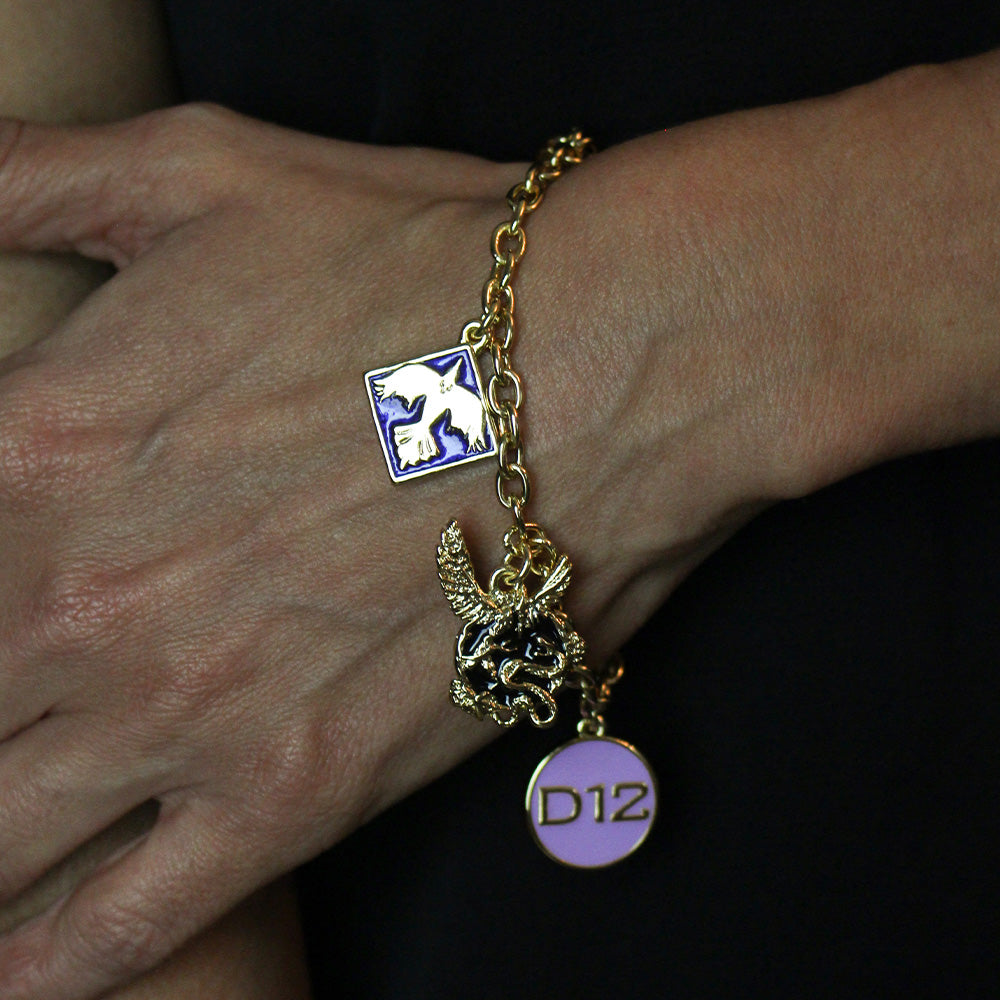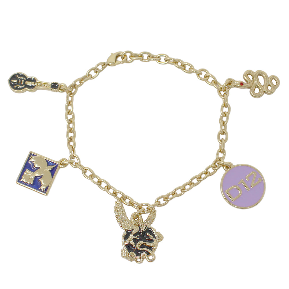 This stylish bracelet features charms that celebrate the spirit of Lucy Gray Baird and District 12, from the world of "The Hunger Games: The Ballad of Songbirds & Snakes". Show your fandom in style. A symbol of loyalty and pride, this bracelet is a sophisticated way to pay homage to the timeless legacy of The Hunger Games. Perfect for the modern collector.