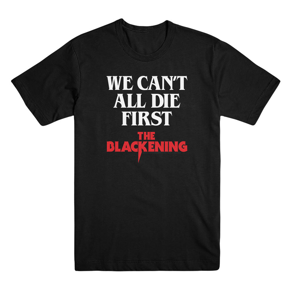 Show your love for The Blackening with this We Can't All Die First black tee.