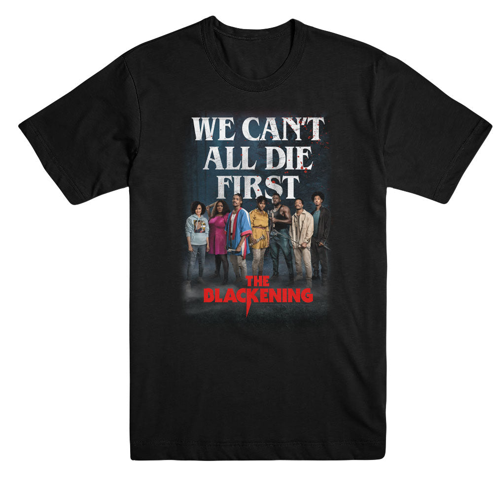 Show off your new favorite horror-comedy film with this black tee featuring key art from The Blackening.