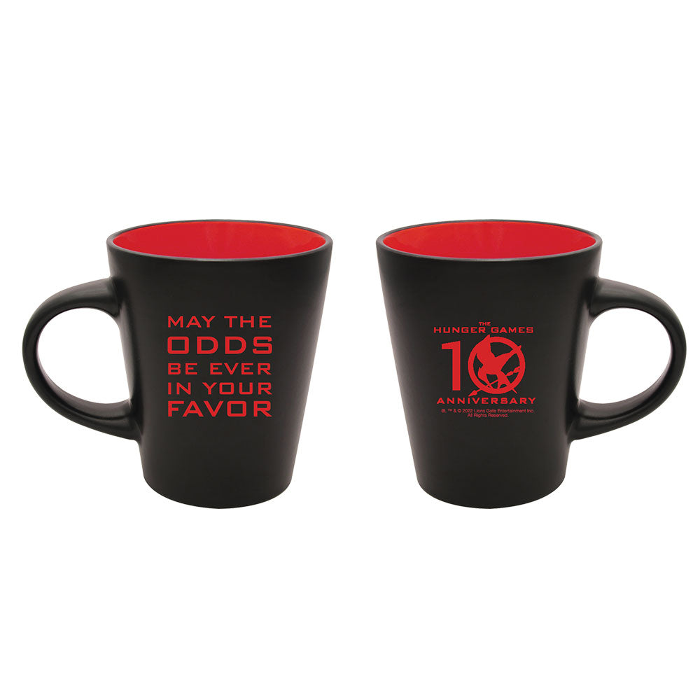Celebrate the 10th Anniversary of The Hunger Games with this bold mug featuring the iconic quote "May The Odds Be Ever In Your Favor"!