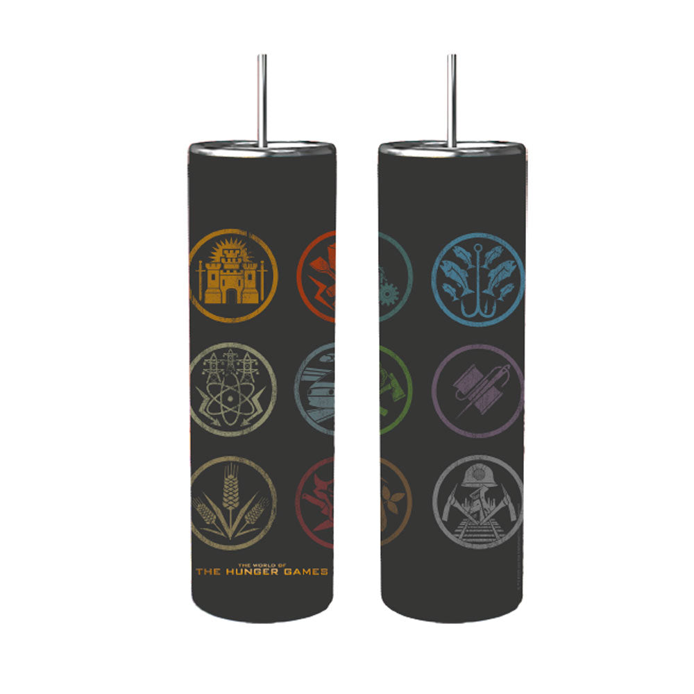 Show your love for unity with this sleek tumbler featuring all 12 district emblems and The World of The Hunger Games.