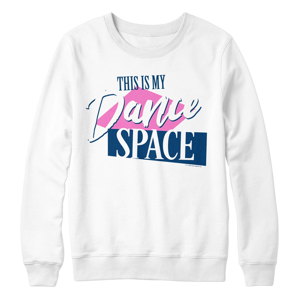Get your cha-cha on, just make sure to stay in your own dance space! This white crewneck features the classic line from Dirty Dancing that Johnny tells Baby as he teaches her how to dance, this is my dance space.